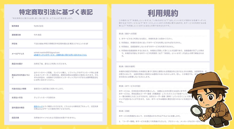インターネット異性紹介事業の届出もあり、運営情報も一応は整っていたよ。