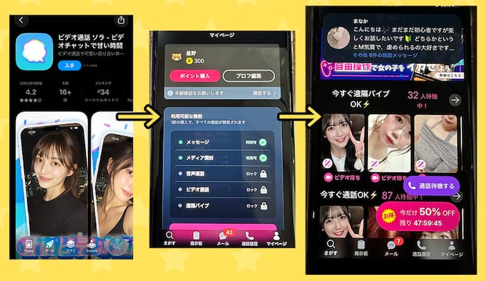 ここまでは、よくあるビデオ通話アプリや出会い系アプリっぽい流れだね。