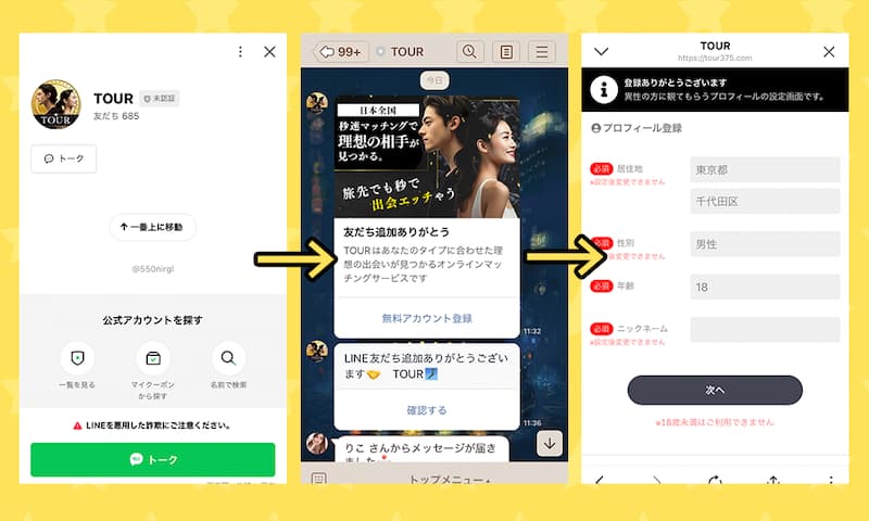 ツアー(TOUR)は、俺がこれまで見てきた中でもかなり危険度が高いLINE出会い系でした!