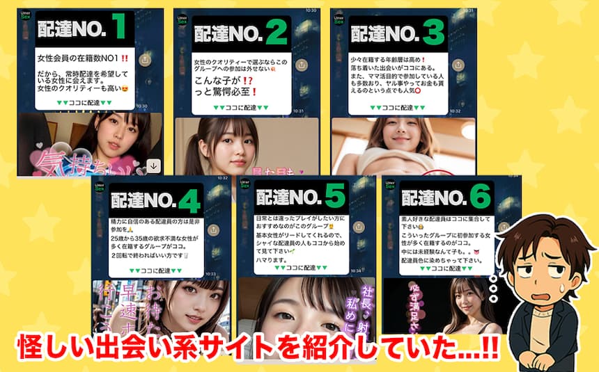 - 年齢認証なしの紹介もあり業者や未成年リスクも高い!