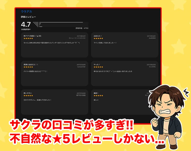 【結論】ウラアカはサクラや業者の危険が多すぎたので要注意!