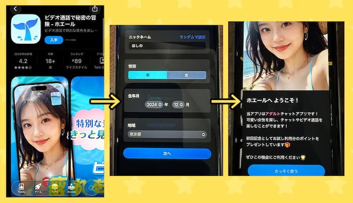 次は実際に、ホエール(ビデオ通話アプリ)に登録してみて、年齢認証や本人確認の有無、アプリ内の動き、女性からのメッセージの実態を検証していきます!