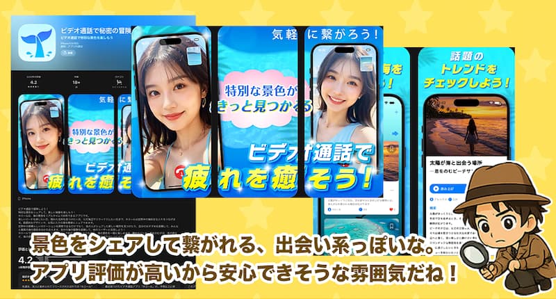 - 景色共有アプリのように見えて、実態は課金狙いのビデオ通話アプリ