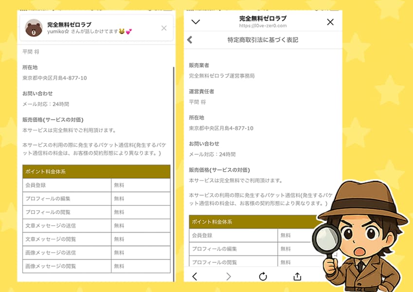 さらに運営情報を見てみると、運営会社名は完全無料ゼロラブ運営事務局。